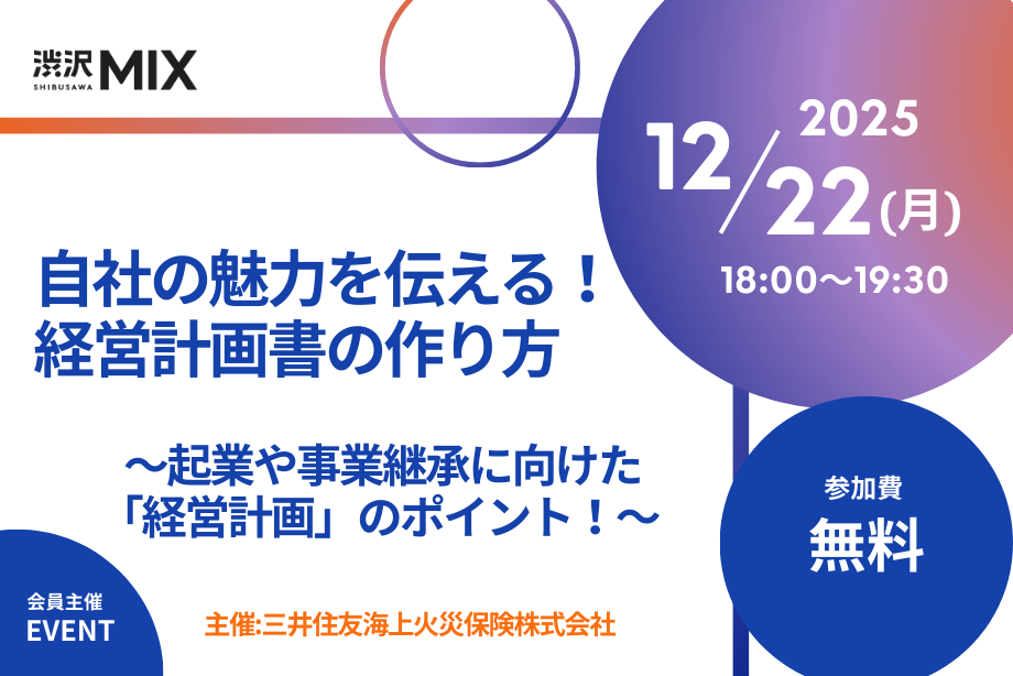 | 会場 | 渋沢MIX 埼玉県さいたま市大宮区吉敷町4丁目262番18 ekismさいたま新都心 5階 |