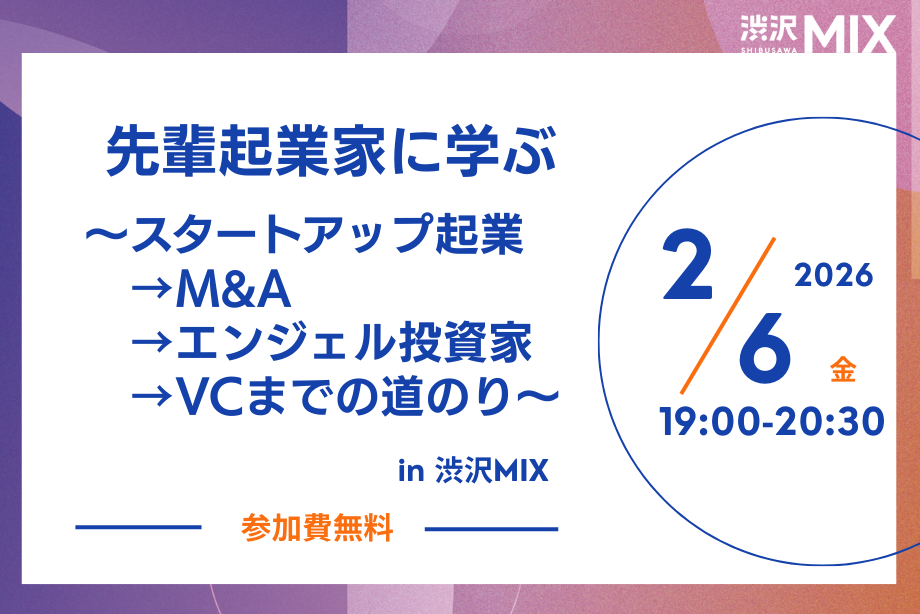 先輩起業家に学ぶ~スタートアップ起業→M&A→エンジェル投資家→VCまでの道のり~